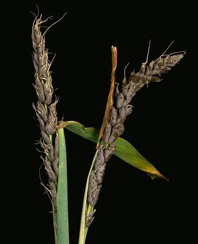 Fusarioz - Fusarioz buğda və arpa toxumlarında geniş yayılmış və ciddi məhsul itkilərinə səbəb olan göbələk mənşəli xəstəliklərdən biridir. Xəstəliyin törədiciləri əsasən Fusarium graminearum, Fusarium oxysporum növləridir. Fusariozun inkişafı üçün optimal şərait 22–28°C temperatur və yüksək (85–100%) nisbi rütubətdir. Xəstəlik xüsusilə yağışlı havalarda və torpaqda suyun yığıldığı ərazilərdə daha fəal inkişaf edir. Fuzarioz xəstəliyi buğda və arpa bitkilərində iki əsas mərhələdə yoluxma göstərə bilər. Birinci yoluxma toxumla baş verir və cücərmə dövründə fidanların kök və gövdə nahiyələrini zədələyir, nəticədə fidanların inkişafı zəifləyir. İkinci yoluxma isə bitkinin vegetasiya dövründə, xüsusilə sünbül çıxarma və çiçəkləmə fazasında baş verir. Bu mərhələdə göbələk sporları sünbülə daxil olaraq dənlərin zəif və zədələnmiş şəkildə inkişaf etməsinə səbəb olur. Yoluxma nəticəsində dənlər kiçik, zəif inkişaf etmiş və bəzən narıncı, çəhrayı və ya ağ rəngdə mitsel örtüyü ilə örtülür. Sünbül fuzariozu zamanı sünbül hissə-hissə və ya tamamilə solur. Gecikmiş halda sünbüllər qismən boş, qeyri-bərabər inkişaf etmiş və dənlər isə çürüməyə meyilli olur.