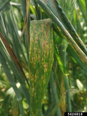 Septorioz - Septorioz xəstəliyinə səbəb olan göbələklər Septoria cinsinə aiddir, ən çox rast gəlinən növü Septoria tritici (buğdada). 15–25°C arasında sürətlə inkişaf edir. Yüksək hava rütubəti (90% və yuxarı) və yağışlı hava şəraiti sporların yayılması və fəallaşması üçün vacibdir. Septorioz göbələyi sporlar vasitəsilə hava və yağış damcıları ilə yayılır. Bitkinin əsasən yarpaq səthinə qonur, yarpaq toxumasına daxil olur və burada inkişaf etməyə başlayır. Bu mərhələdə göbələk sporları sünbül üzərinə düşərək, toxumun səthinə və daxili toxum hüceyrələrinə daxil olur. Göbələk vegetasiya dövründə bir neçə nəsil verə bilər. Yoluxma əsasən erkən vegetasiya mərhələsində başlayır, amma simptomlar yarpaqların inkişaf etdiyi mərhələlərdə daha aydın görünür. İlk simptomlar alt yarpaqlarda, uzunsov formalı xlorotik (sarı) ləkələr şəklində yaranır. Bu ləkələr zamanla qəhvəyi və ya boz rəng alır. Ləkələrin mərkəzində qaranlıq nöqtələr — piknidilər (göbələyin sporla dolu orqanları) müşahidə olunur. Bu, Septorioz üçün ən tipik vizual əlamətdir. Ləkələr tədricən birləşir və böyük sahələri əhatə edir, nəticədə yarpaq quruyur. Xəstəlik yuxarı yarpaqlara doğru inkişaf etdikcə fotosintez zəifləyir və məhsuldarlıq azalır. Ağır yoluxma zamanı sünbül tam quruyur və dənlər zəif inkişaf edir.
